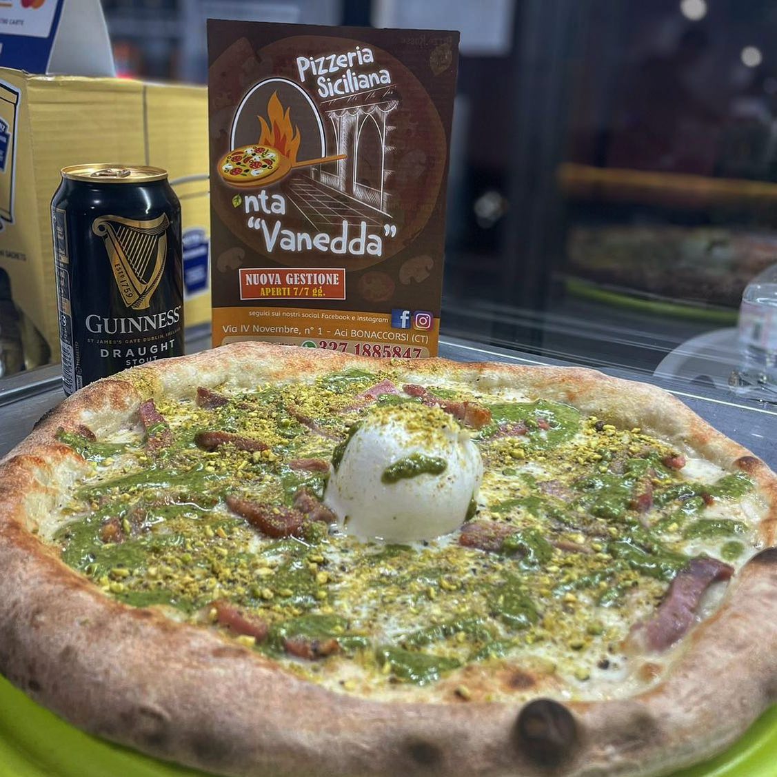 Bocconcino Fior di Latte, Prosciutto Cotto, Uovo, Melanzane Fritte, Scaglie di Grana, Pesto di Pistacchio, Farina e Granella di Pistacchio
