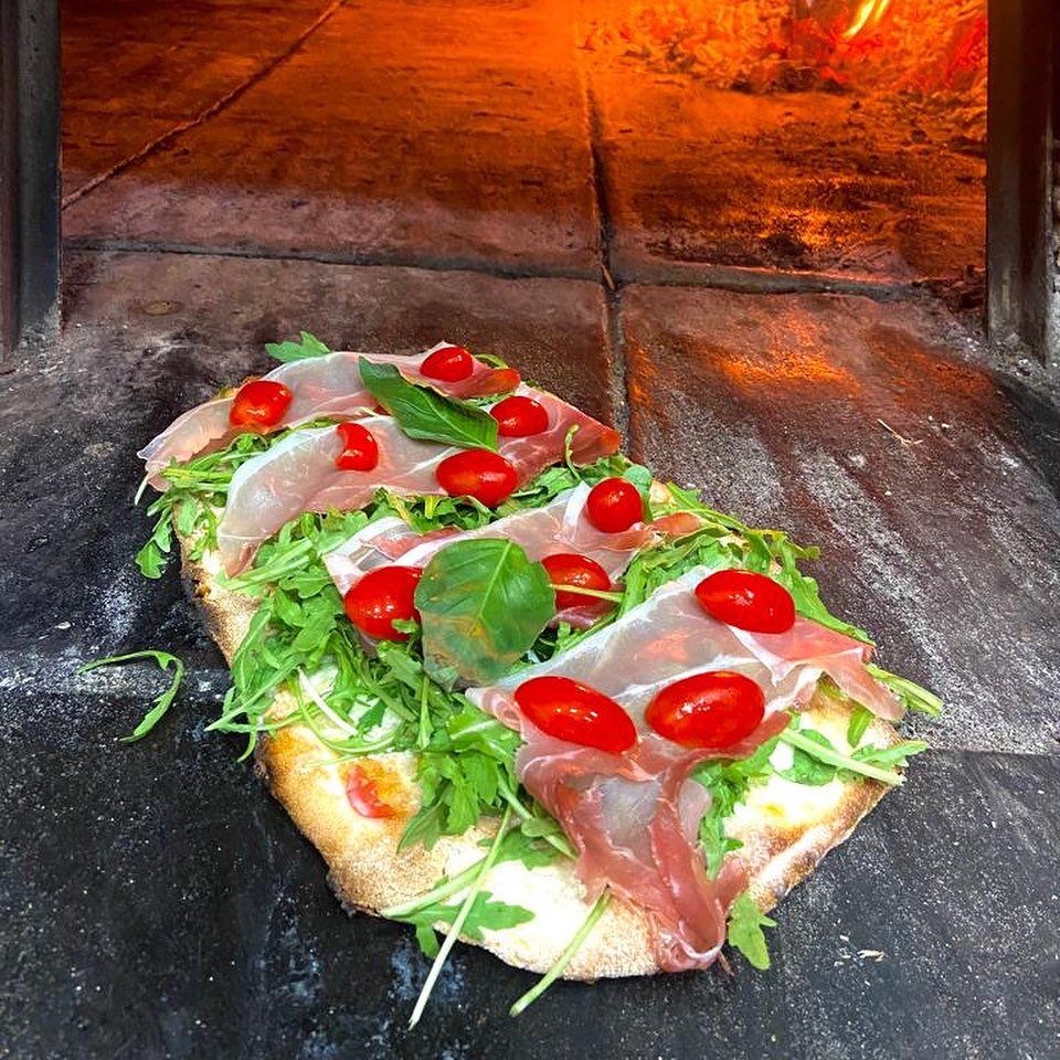 Pomodoro, Bocconcino fiordilatte, Prosciutto Cotto, Uovo, Melanzane Fritte, Scaglie di Grana, Olio Evo, Origano,Basilico Km0